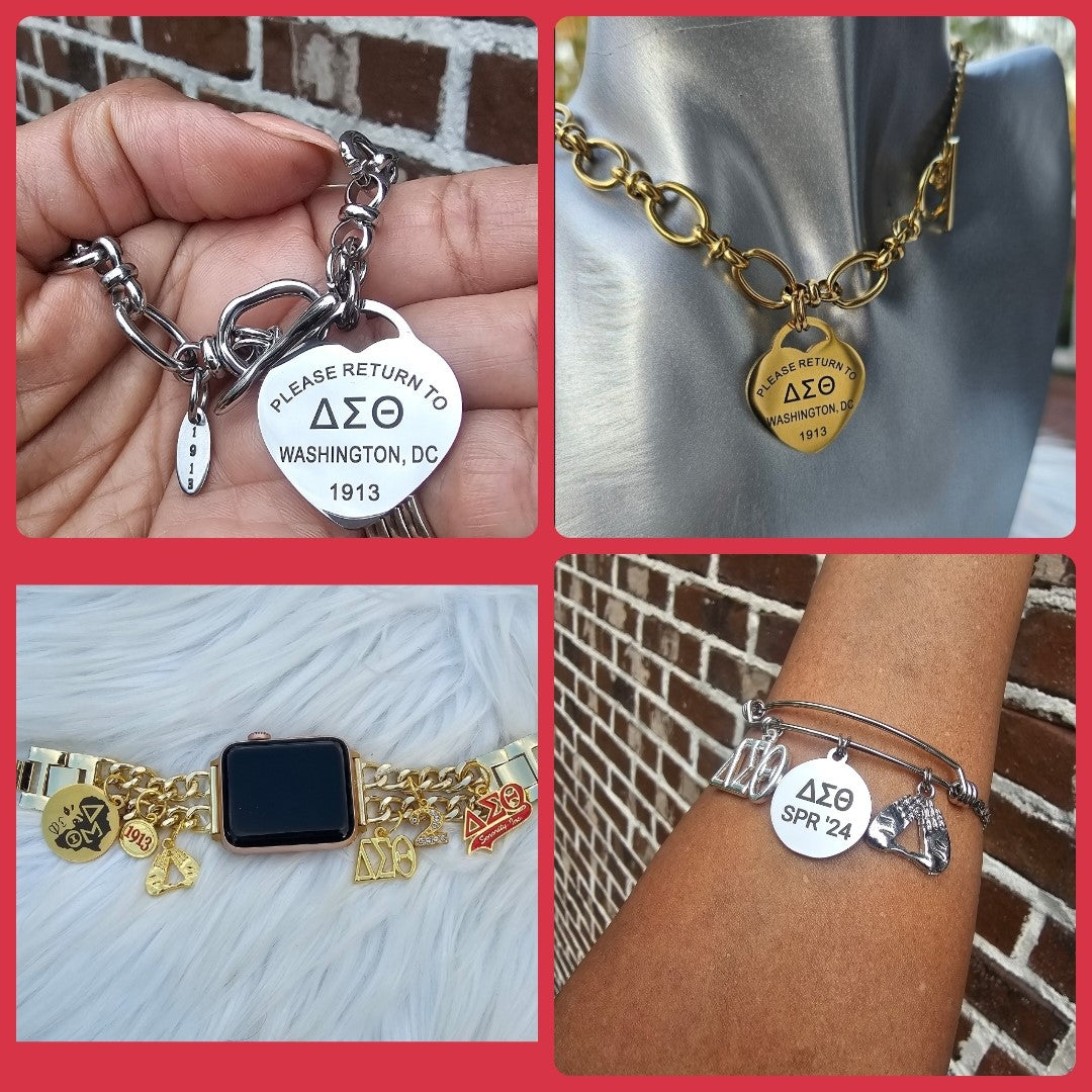 Tiffany Inspired Delta Sigma Theta Sorority Bracelet Available In Gold & Silver