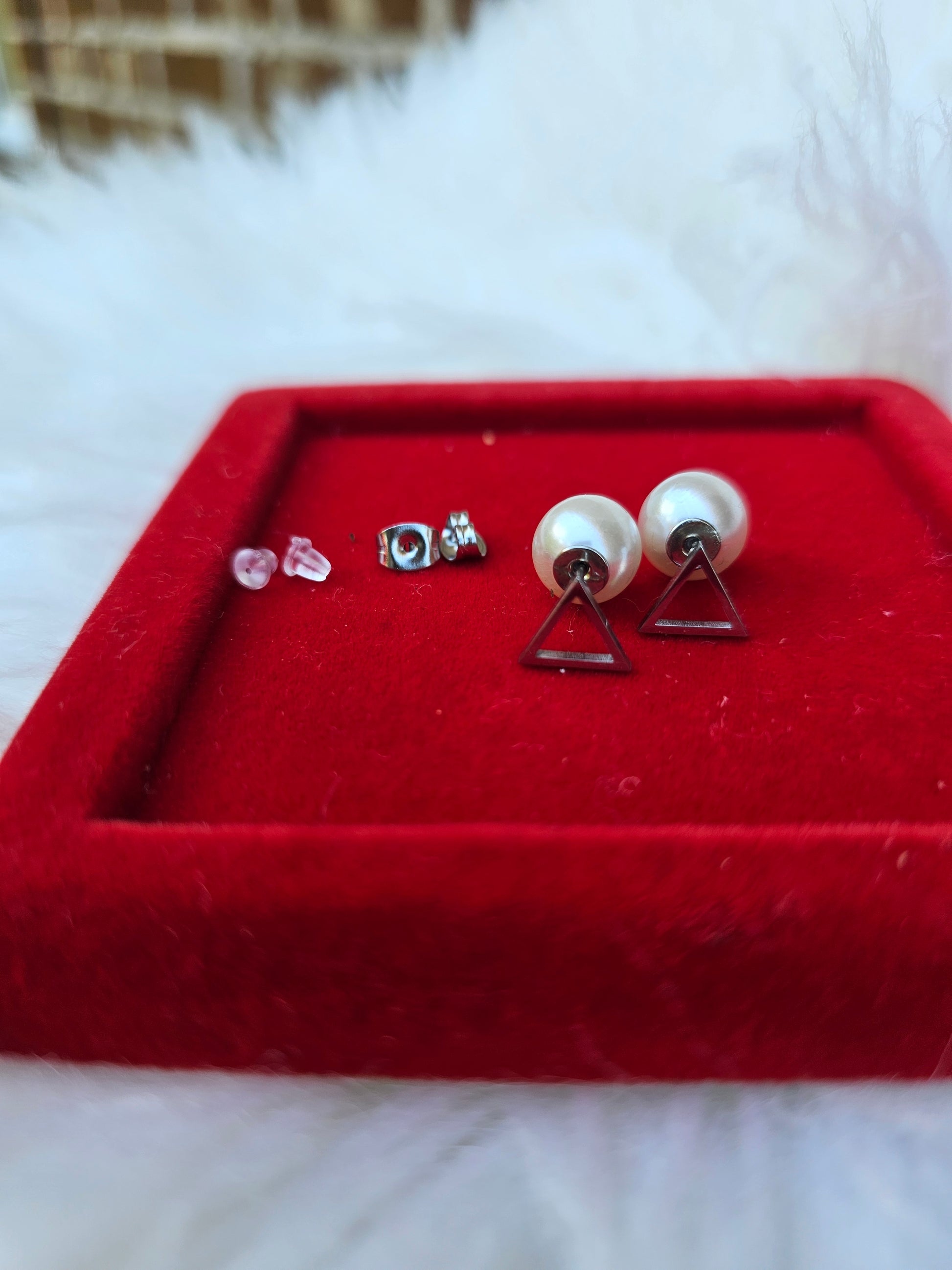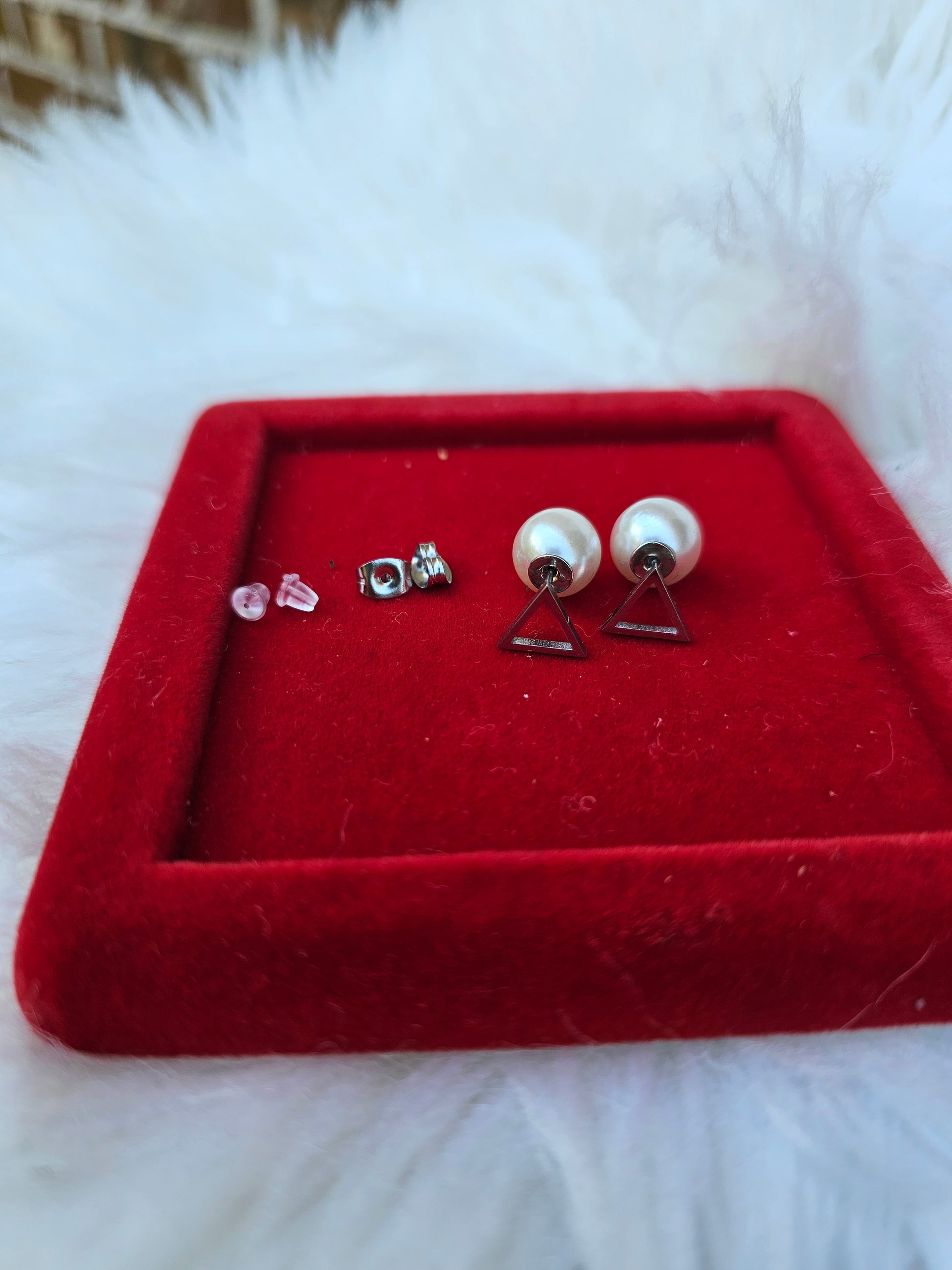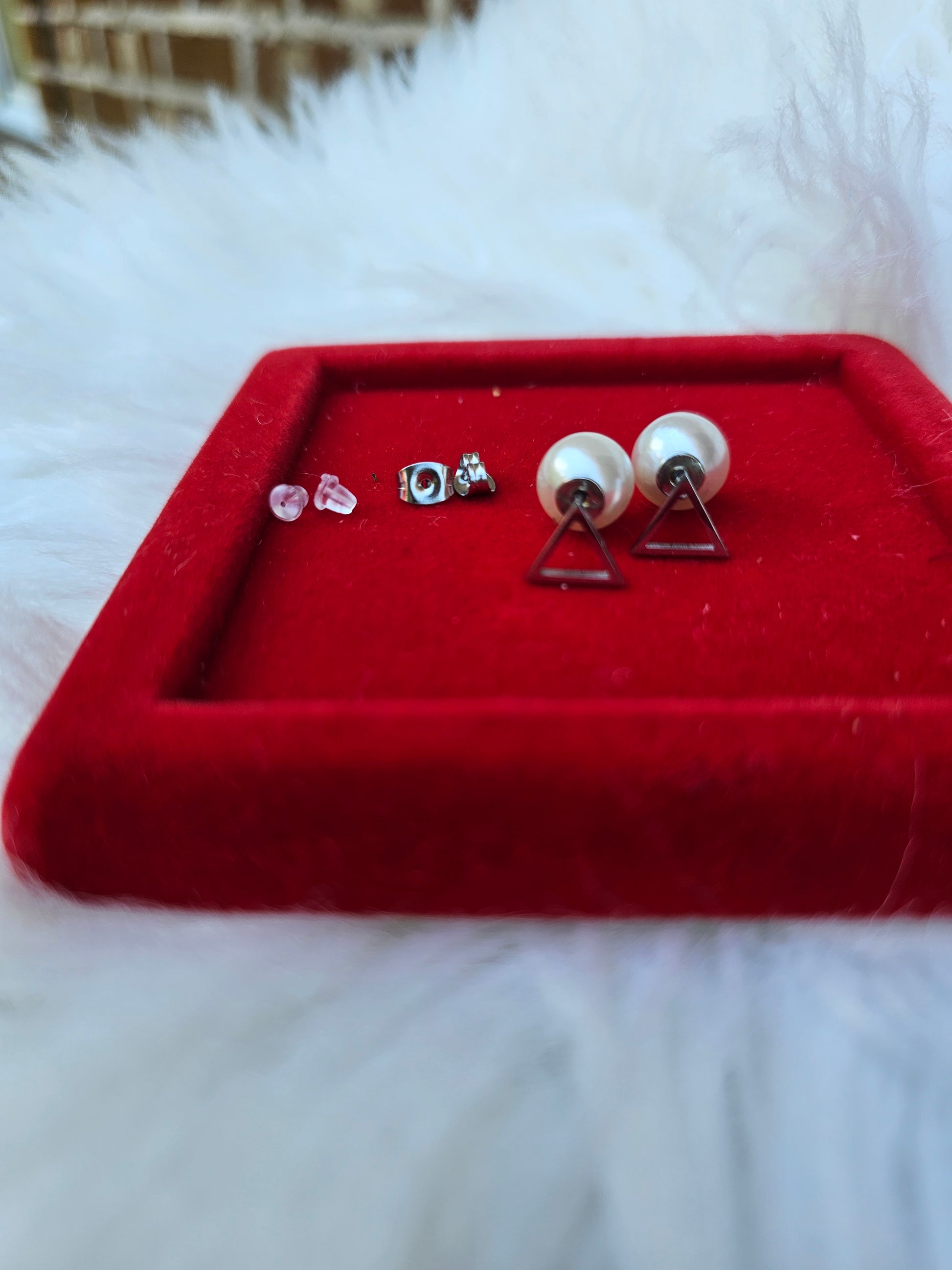 The earrings include 3 styles of earring backs (8mm pearl, hyperallergenic silver or gold, and silicone back).