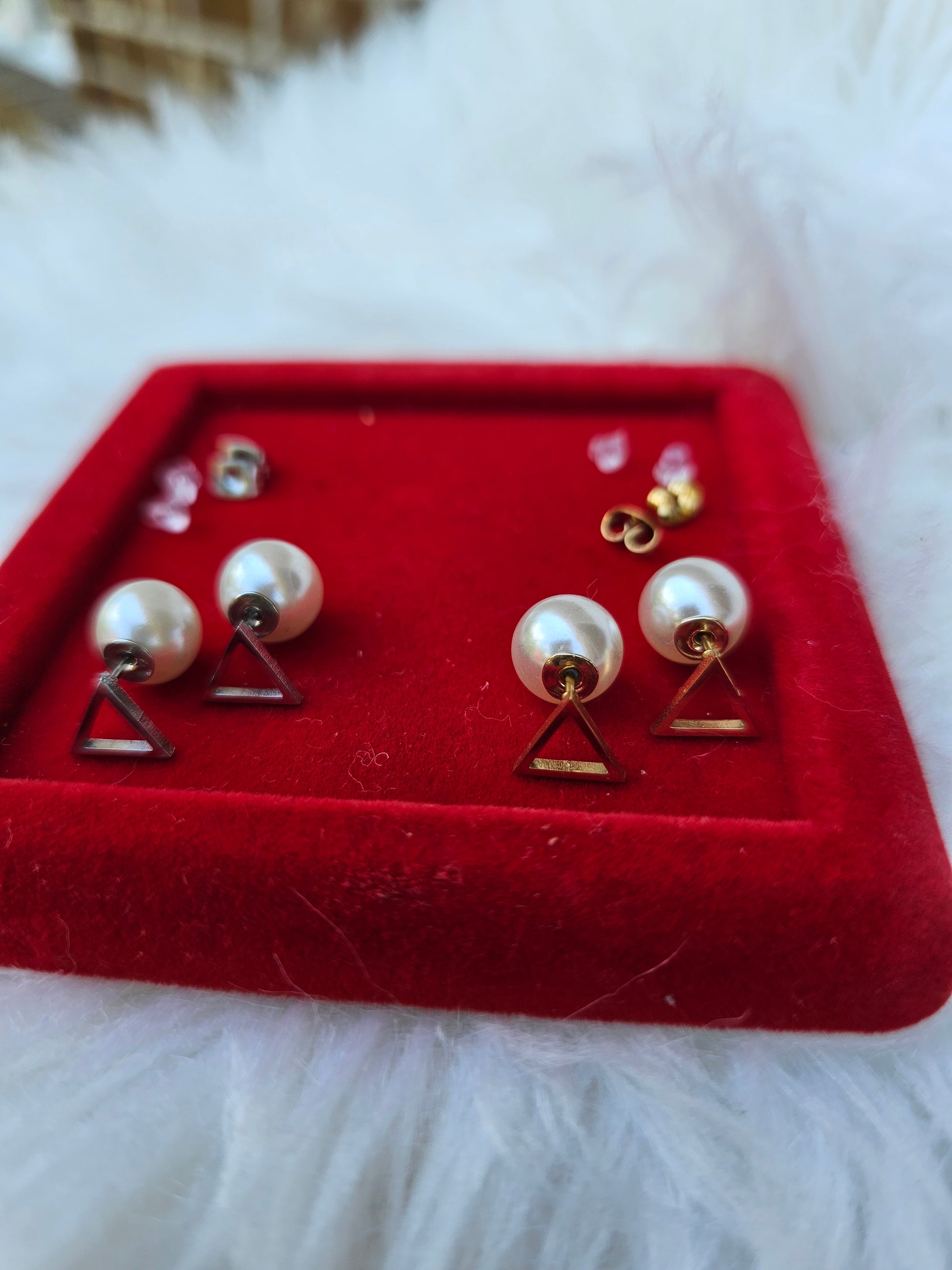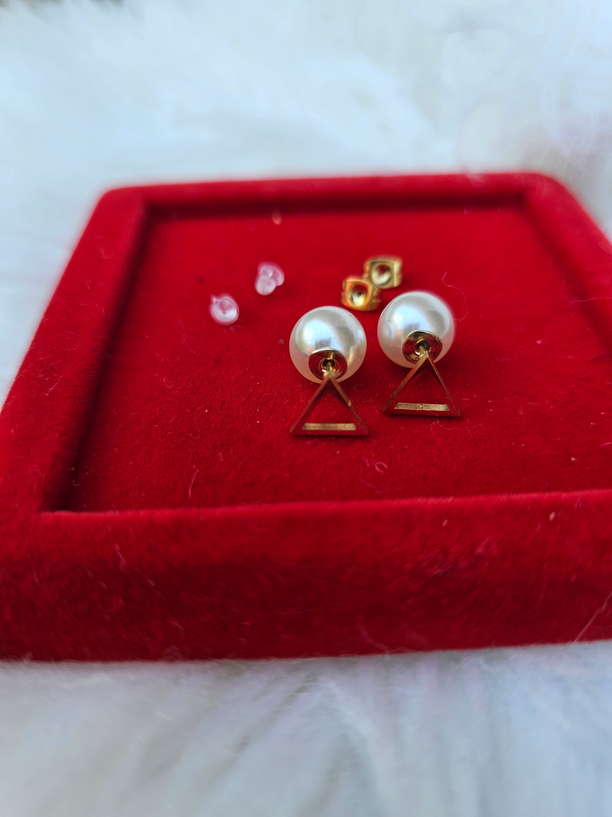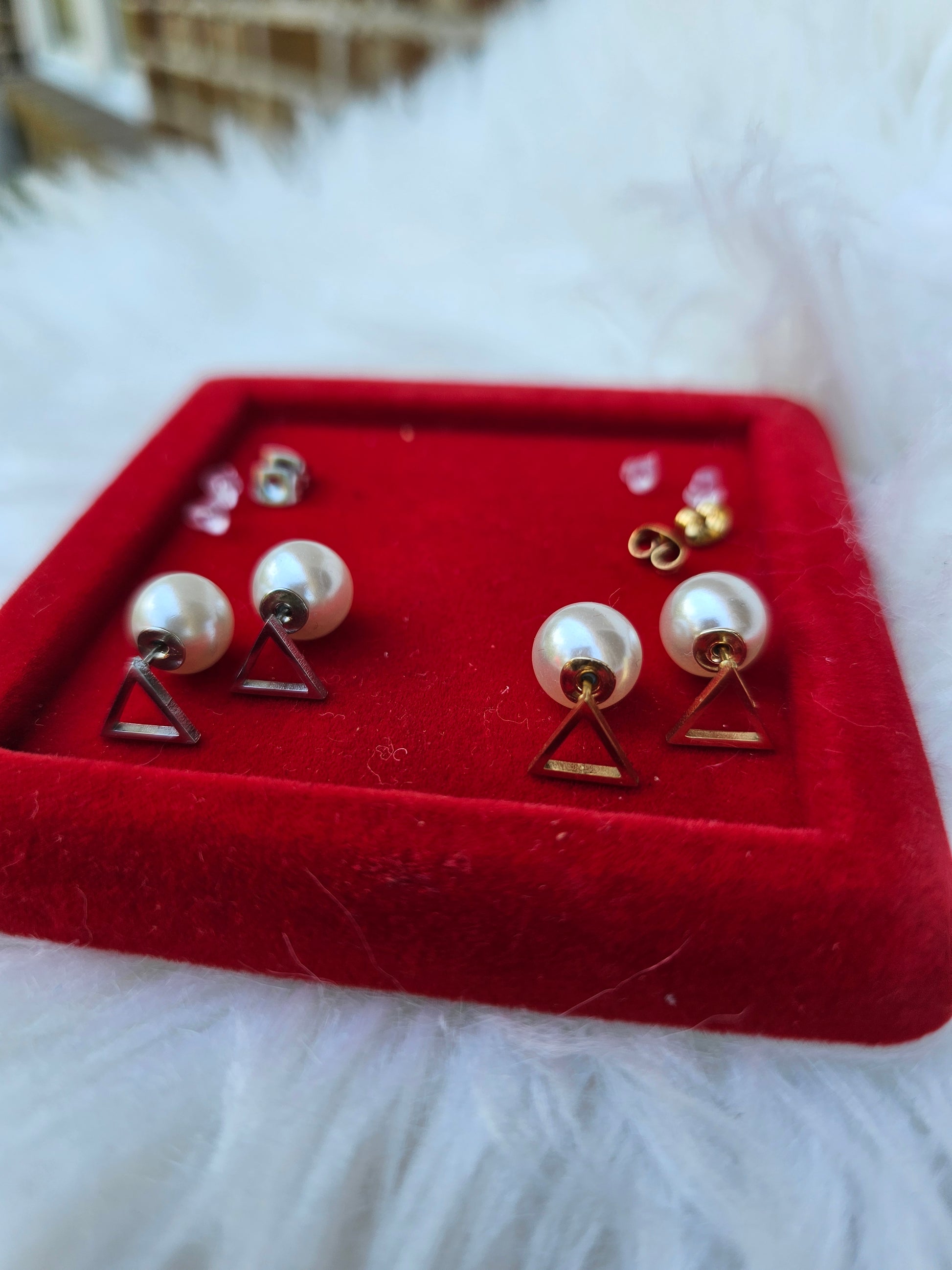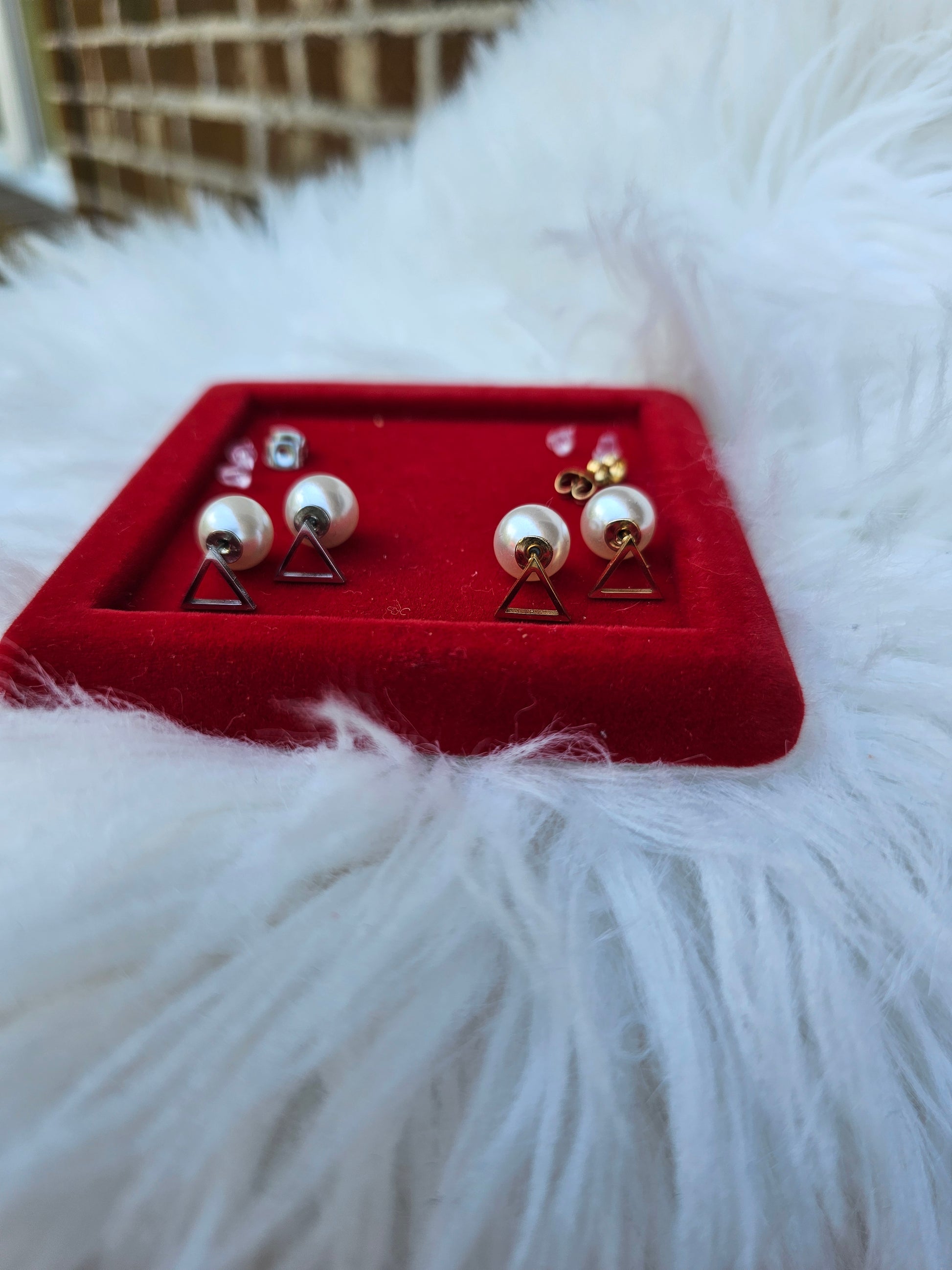 The earrings include 3 styles of earring backs (8mm pearl, hyperallergenic silver or gold, and silicone back).